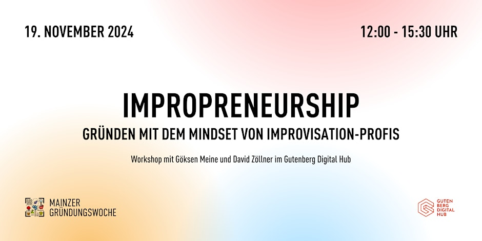 Gemeinsam mit der großartigen Göksen Meine gestalte ich im Rahmen der Mainzer Gründungswoche im Gutenberg Digital Hub den Workshop “Impropreneurship” – Gründen mit dem Mindset von Improvisations-Profis.